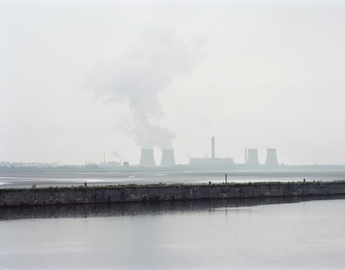 Péter Ildikó: Szénerőmű a River Mersey és a Manchester Ship Canal-lal szemközt. Mersey Road, Runcorn, Anglia. Észak-Anglia, az ipari forradalom útja, 2012, 4X5”-es színes negatív nyersanyag, 130X105 cm-es archív inkjet nyomat
